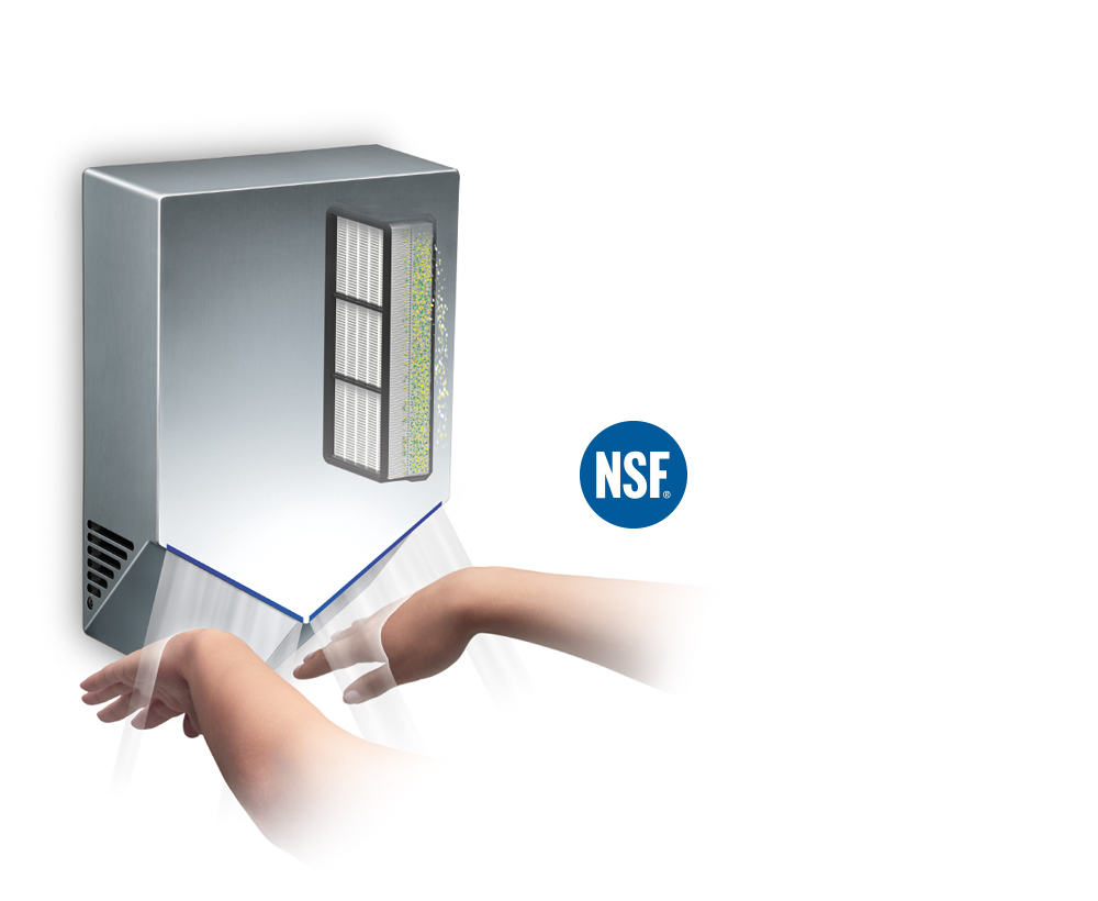 Dyson Airblade™ hand dryers have HEPA filters installed as standard. So hands are dried with cleaner air, not dirty air.